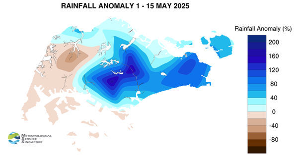Over the first half of May, moderate to heavy thundery showers fell over parts of the island on most days, with most parts of Singapore experiencing above-average rainfall.