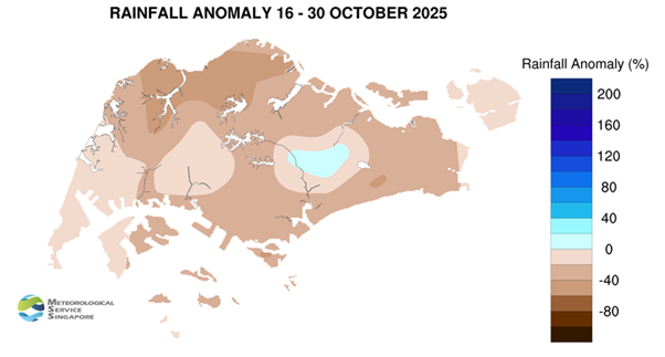 In the second half of October, most parts of Singapore registered below-average rainfall, with localised short-duration thundery showers over parts of the island on some days.