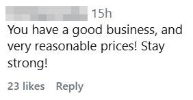 A netizen praised the brand for its “very reasonable prices” and urged them to stay strong.