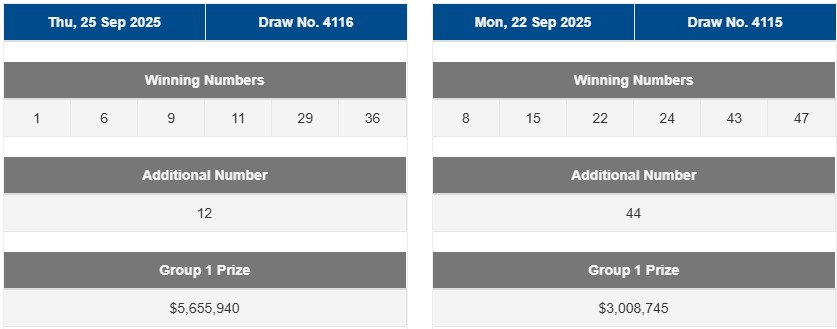 This caused the Group 1 prize to increase from S$1.24 million on 18 Sept to more than S$3 million on 22 Sept, and then S$5.66 million on 25 Sept.