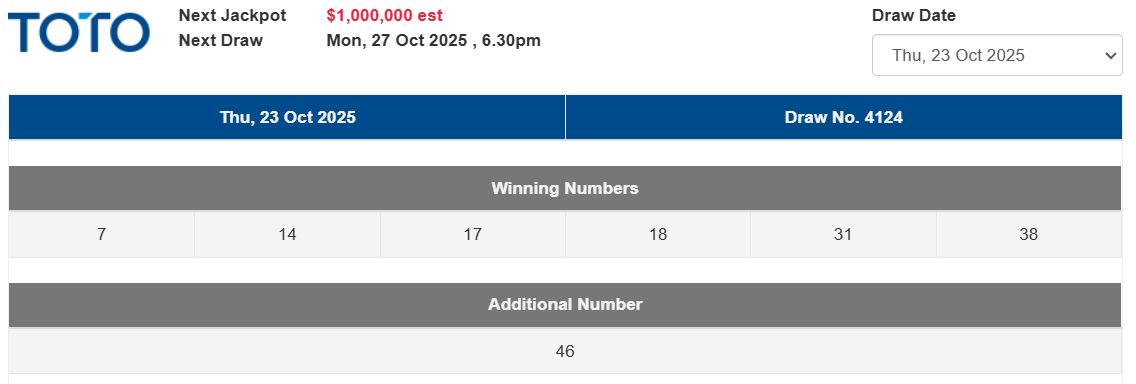 3 punters share S$12.4M TOTO jackpot after cascade draw on 23 Oct