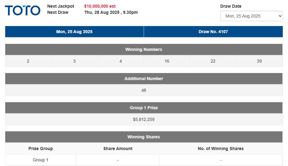 TOTO jackpot grows to S$10 million for 28 Aug draw, ninth time this year that prize hits eight figures