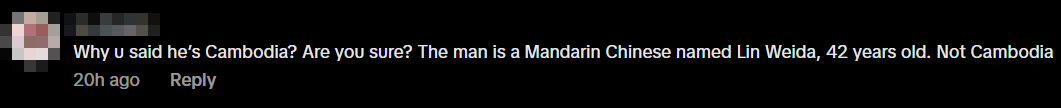 Lin’s nationality remains unclear. Some sources state that he is from Cambodia, while others have expressed doubts, pointing to his Chinese name.