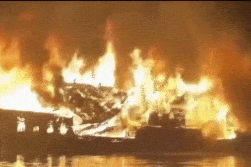 According to local reports, the fire was eventually extinguished and the boat did not sink.