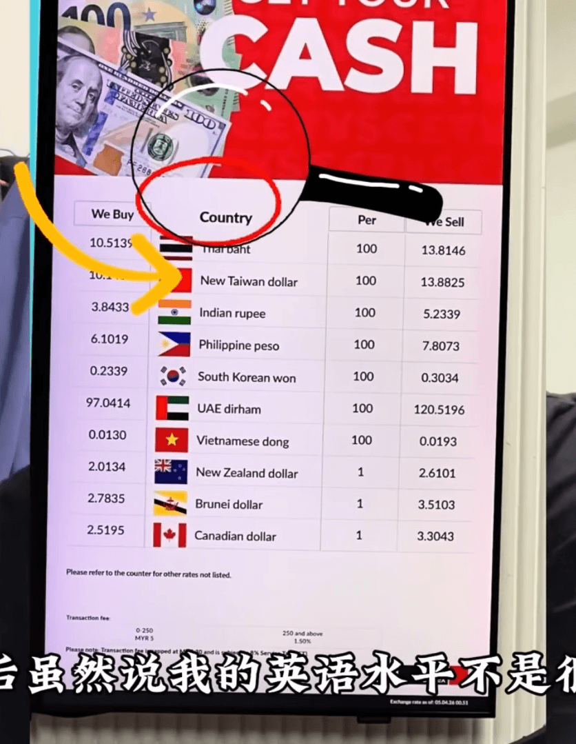 A conversation between a tourist visiting Malaysia and a currency exchange clerk at Kuala Lumpur International Airport (KLIA) has drawn attention, after the tourist questioned how Taiwan and Hong Kong currencies were presented on the exchange rate board.