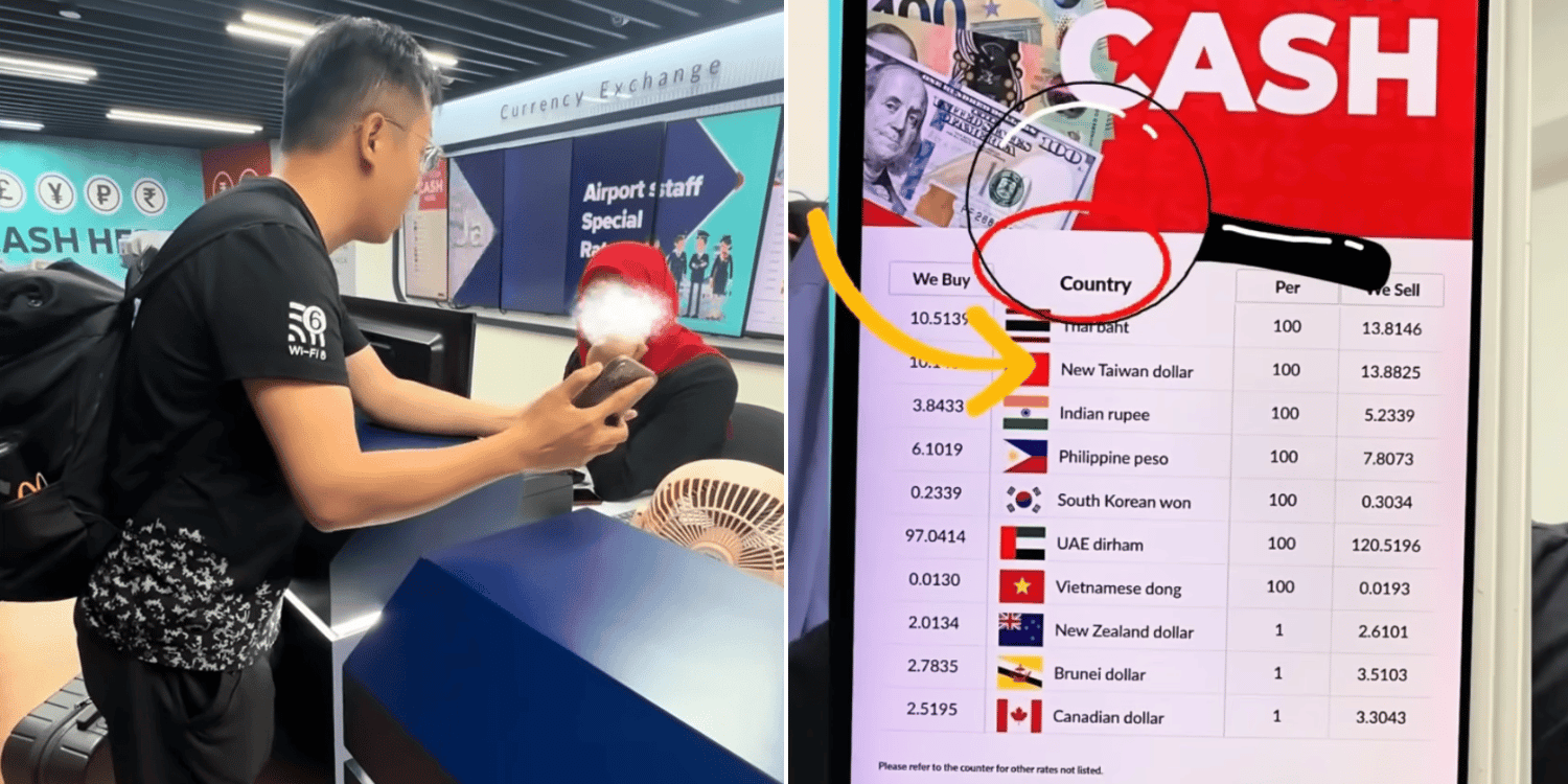 Tourist in Malaysia questions display of Taiwan and Hong Kong currencies at KLIA exchange booth