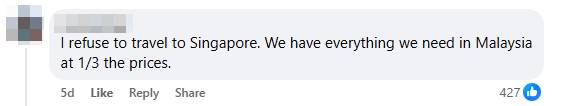 “I refuse to travel to Singapore. We have everything we need in Malaysia at 1/3 the prices,” one commenter wrote.