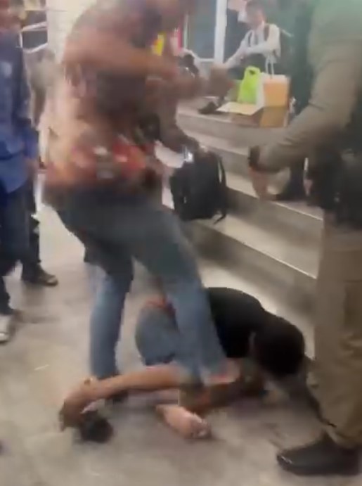 Later, a man suspected of being the culprit is seen getting beaten and kicked even as he sits handcuffed on the ground.