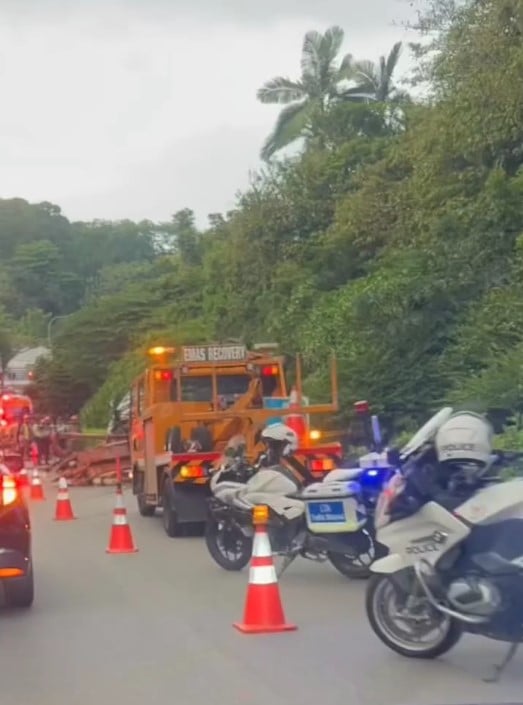 Present at the scene were a police motorcycle, Land Transport Authority (LTA) Traffic Marshall motorcycle and an Expressway Monitoring Advisory System (EMAS) Recovery vehicle.