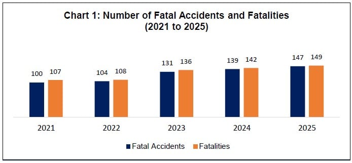 The number of fatal road traffic accidents in 2025 was 147 — a 5.8% increase from the 139 in 2024.