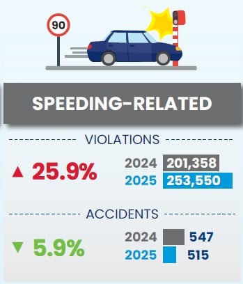 54,612 speeding violations were detected in 2025, a 150.9% increase from the 21,768 in 2024, SPF noted, adding: