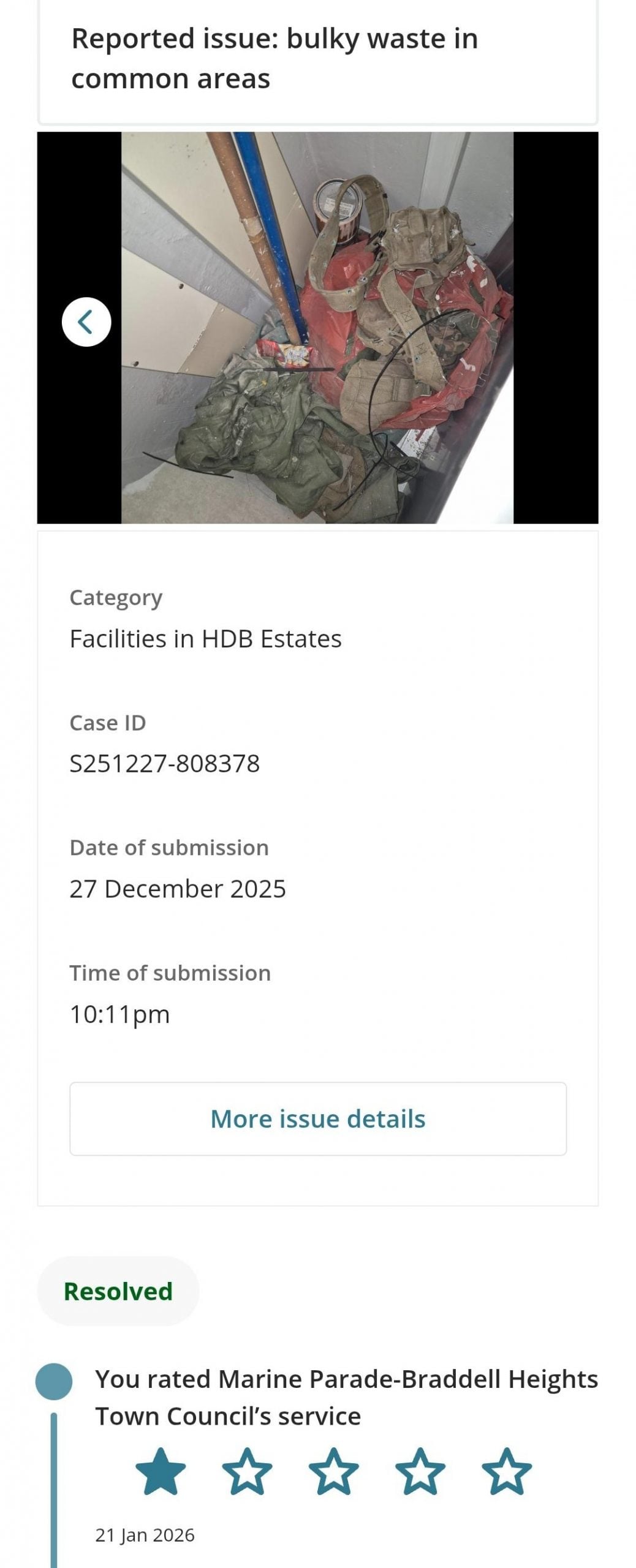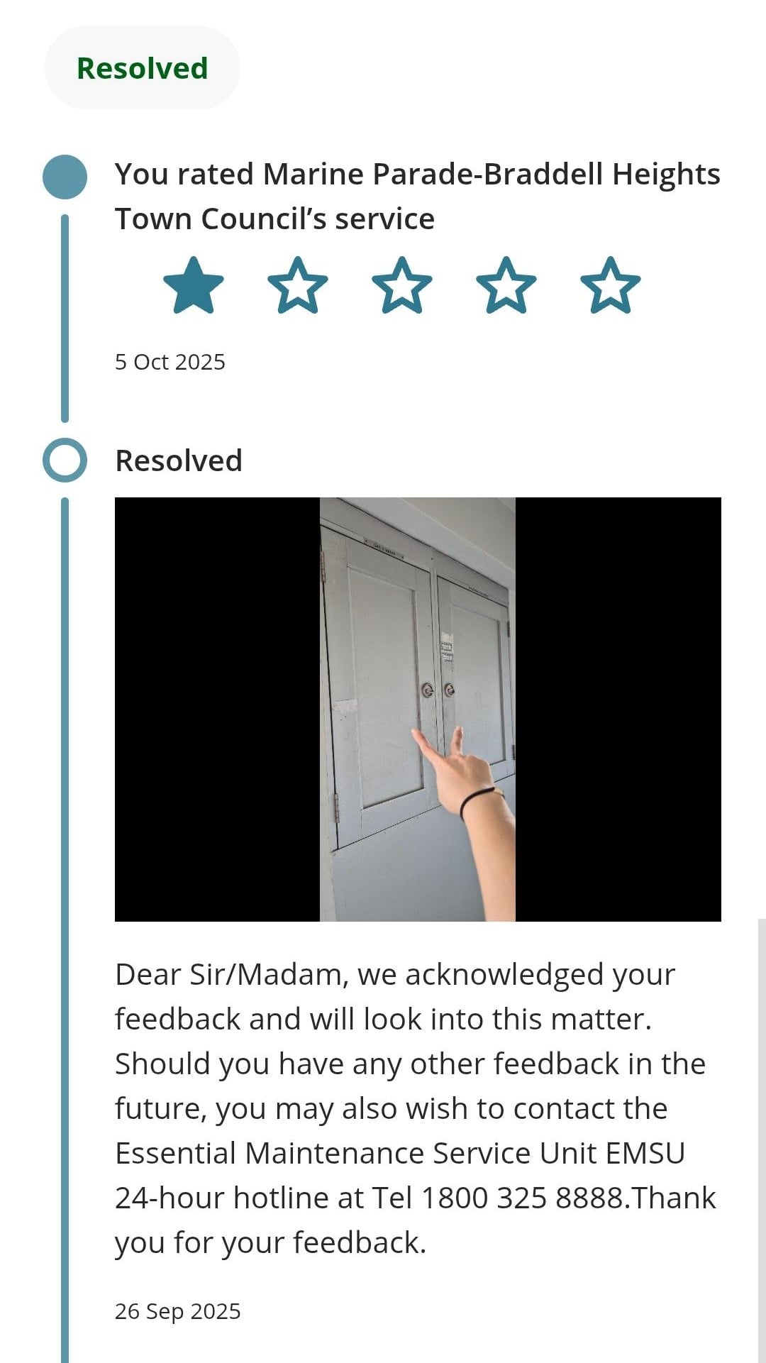 On 5 Oct 2025, Marine Parade-Braddell Heights Town Council (MPBHTC) marked the case as resolved.