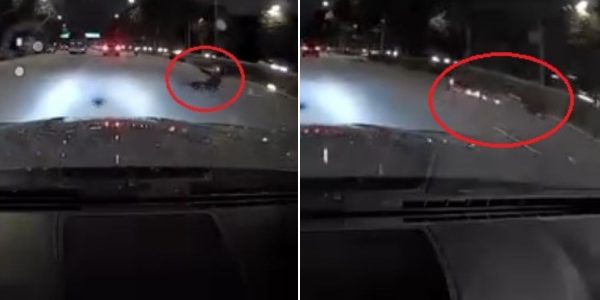 The tree suddenly fell into the motorcycle’s path, and the rider could not avoid it.