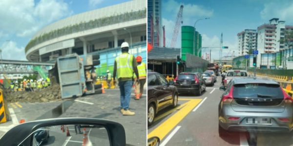 Tipper truck driver sent to hospital after vehicle flips on its side along Marymount Road