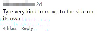 Another user joked that the tyre was “very kind” to move off the road by itself.