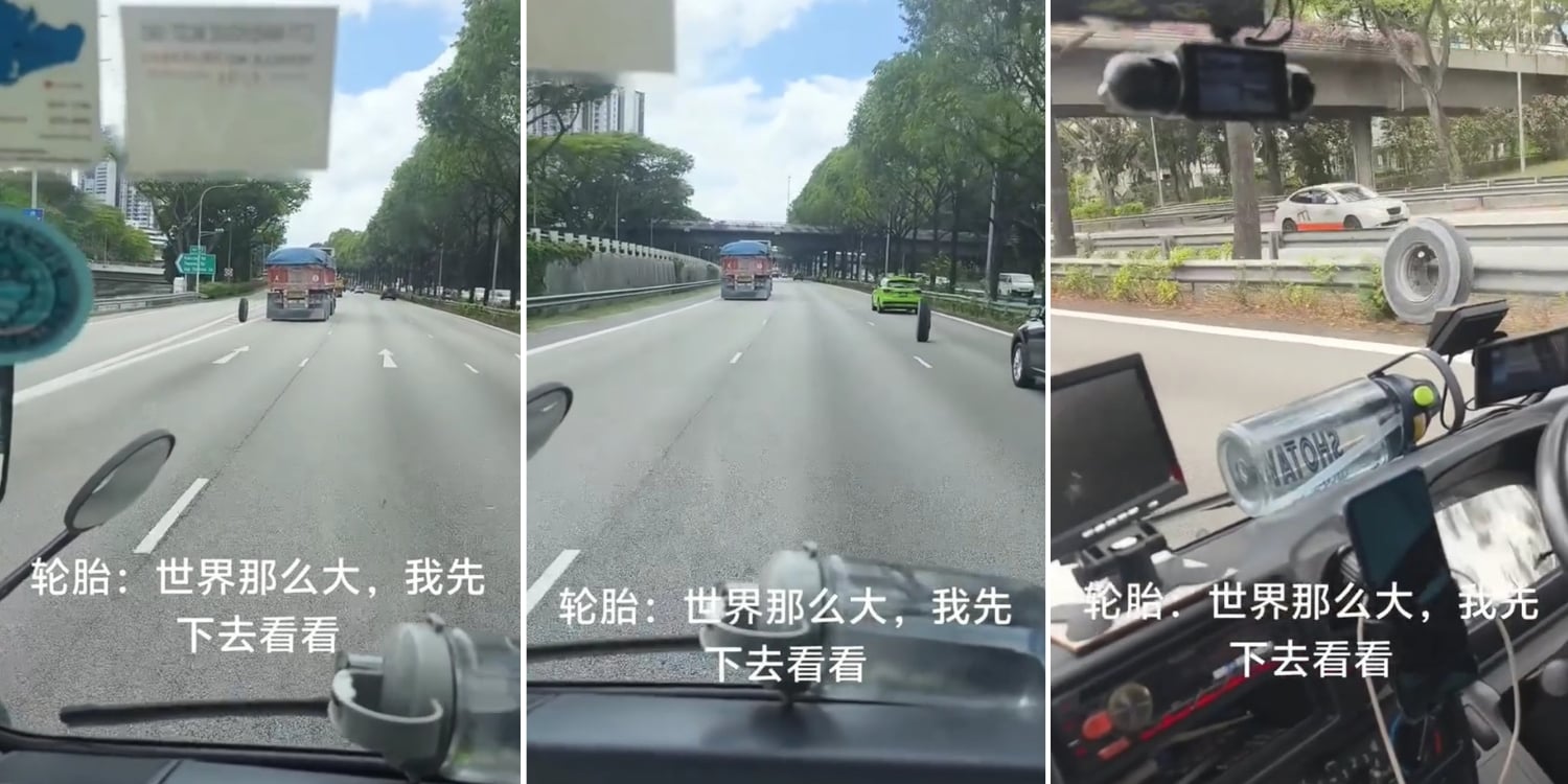 Truck tyre comes off moving vehicle & rolls across three lanes on PIE, narrowly misses cars