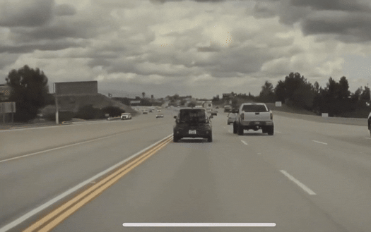 One of the truck’s left rear wheels dislodged from the vehicle, and ended up being left behind by the unaware driver.