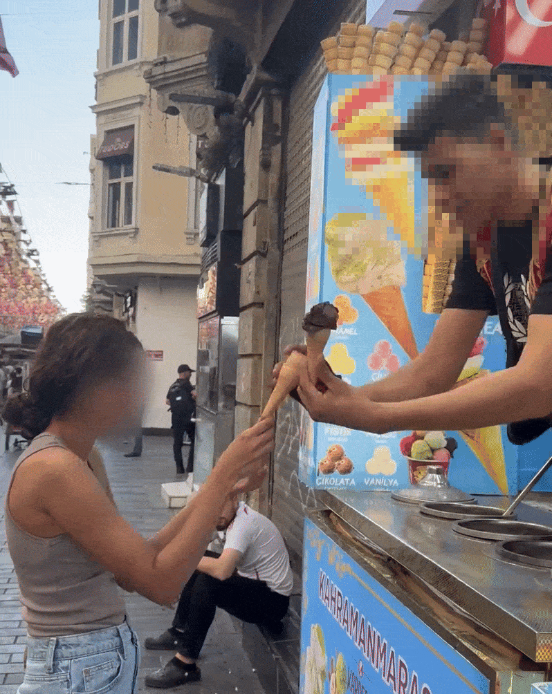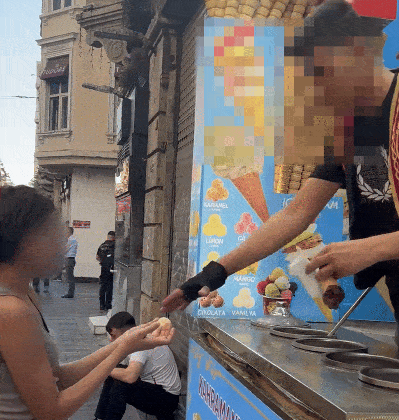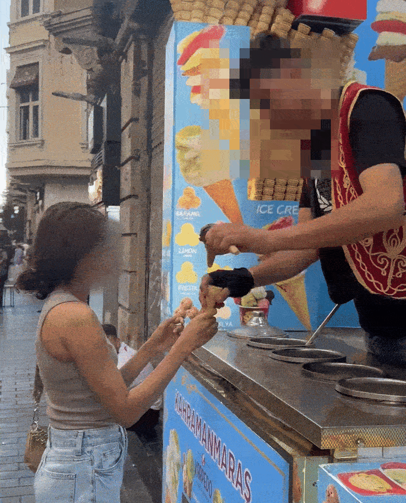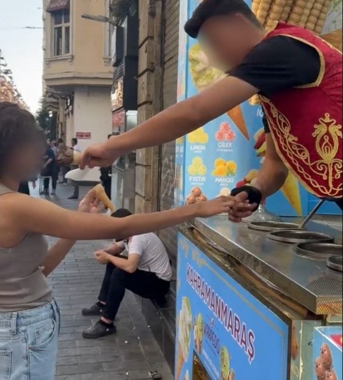 It is common for Turkish ice cream vendors to prank customers with playful tricks and showmanship.