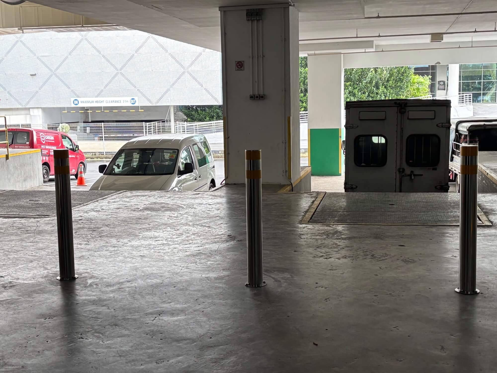 In response to the incidents, the building management installed three bollards at the edge of the drop-off point to prevent further accidents.
