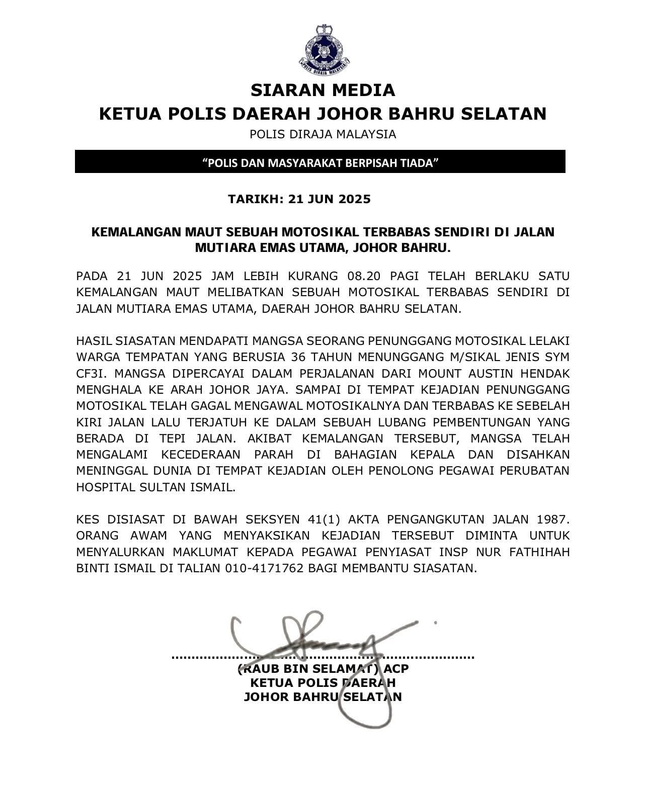 Featured image adapted from Polis Daerah Johor Bahru Selatan on Facebook.
