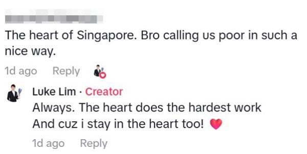 A netizen joked that the content creator was being diplomatic when referring to the “heart of Singapore,” to which Luke replied that’s where he lived as well.