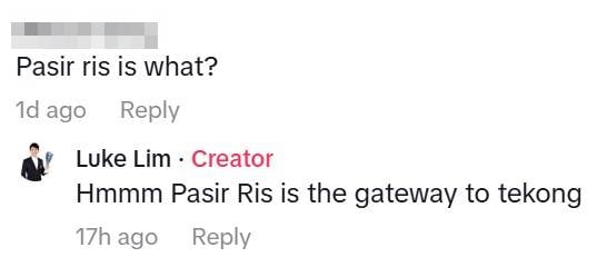 Another TikTok user asked what Pasir Ris was, to which Luke cheekily said: “Gateway to Tekong”.