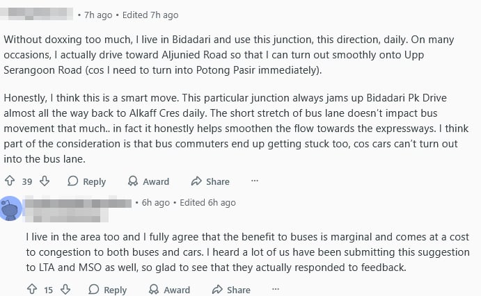 They explained that Bidadari Park Drive often experiences heavy tailbacks, adding that the change would not affect buses that much.