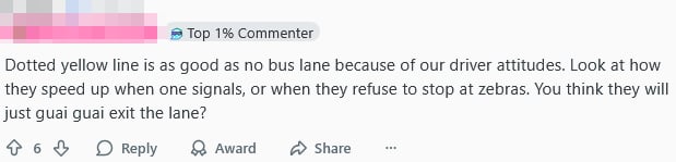 Others raised concerns that dotted bus lanes are often ignored by motorists. This makes enforcement difficult, they added, and effectively renders the lane meaningless.