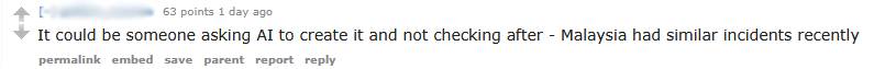 Another Redditor suggested it might have been an AI error, even citing the recent incidents in Malaysia.