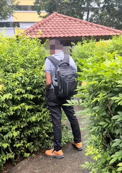 The clip, uploaded by Mr Lim Kiat Hao, shows an older man with a black haversack standing among some bushes, appearing to relieve himself in broad daylight.