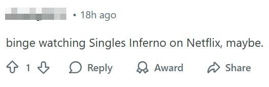 Another netizen joked that they would probably binge-watch Single’s Inferno on Netflix.