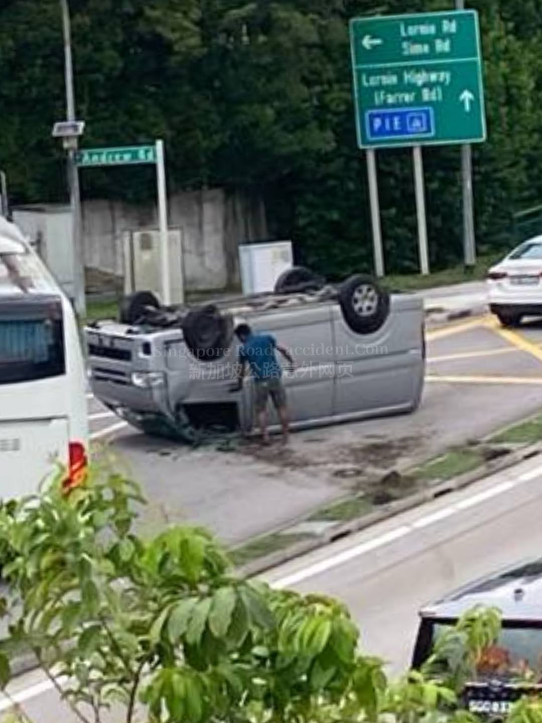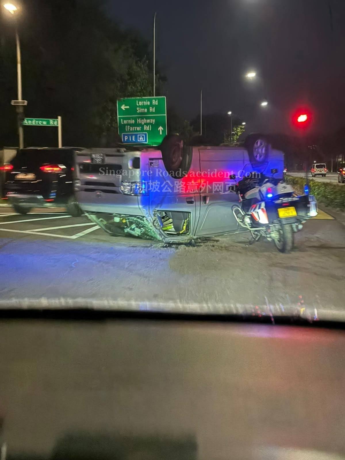 Photos of the aftermath of the accident were posted by Singapore roads accident.com on Facebook, showing the silver van lying on its roof on the road near the junction with Andrew Road.