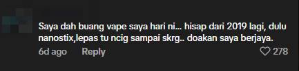 This netizen, who similarly picked up the vaping habit in 2019, said he has since gotten rid of his vape device and also asked others to pray for his success.