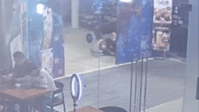 He then hooked his leg under the waiter’s, causing the latter to fall to the ground.