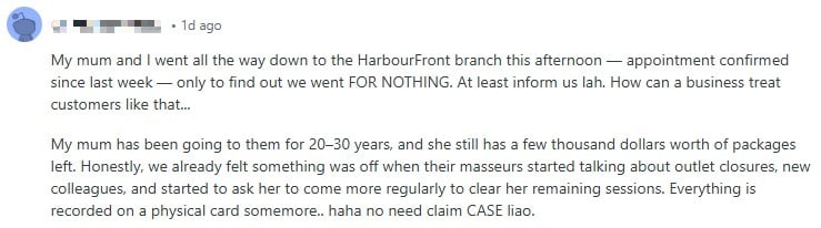 Another user said in the same discussion that they and their mother went down to the HarbourFront centre branch on Sunday (23 Nov) afternoon for their appointment, only to find it similarly shuttered.