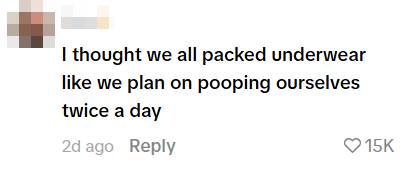 One user even jokingly said she thought everyone packed undergarments excessively, “like we are planning on pooping ourselves twice a day”.