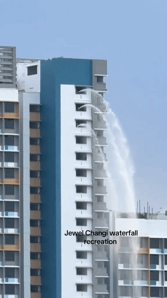 The clip was captioned “Jewel waterfall recreation”, drawing comparisons to the iconic indoor waterfall at Jewel Changi Airport.