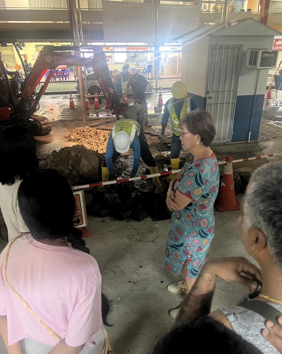 She informed Block 811 residents that the water tank would still be available through the night while work on the pipe continued.