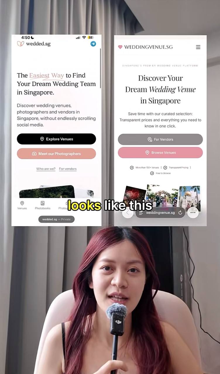 In a TikTok video posted on 20 Feb, Alyssa, 30, founder of Wedded.sg, questioned whether the company had replicated her newly launched wedding venue finder.