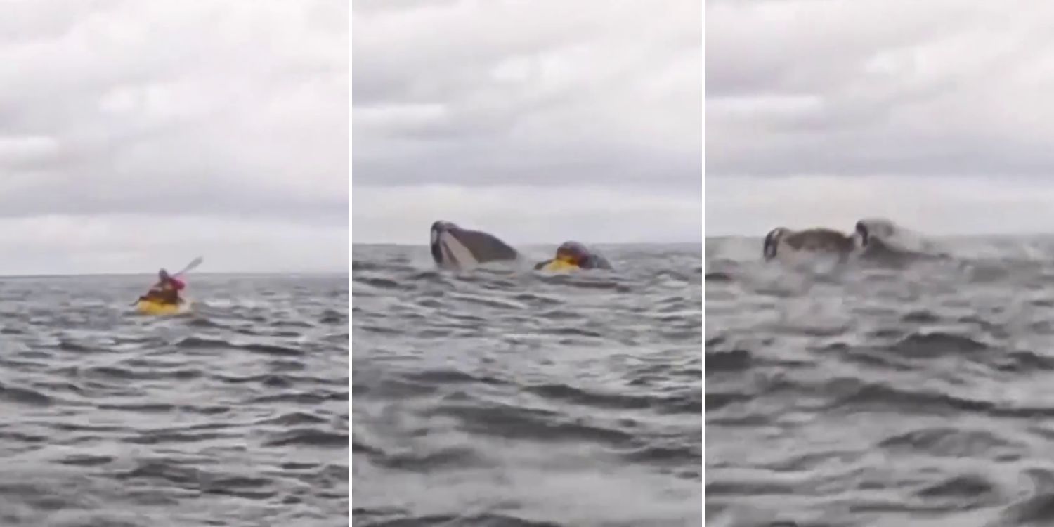 Whale briefly engulfs kayaker