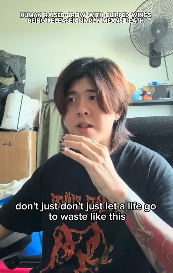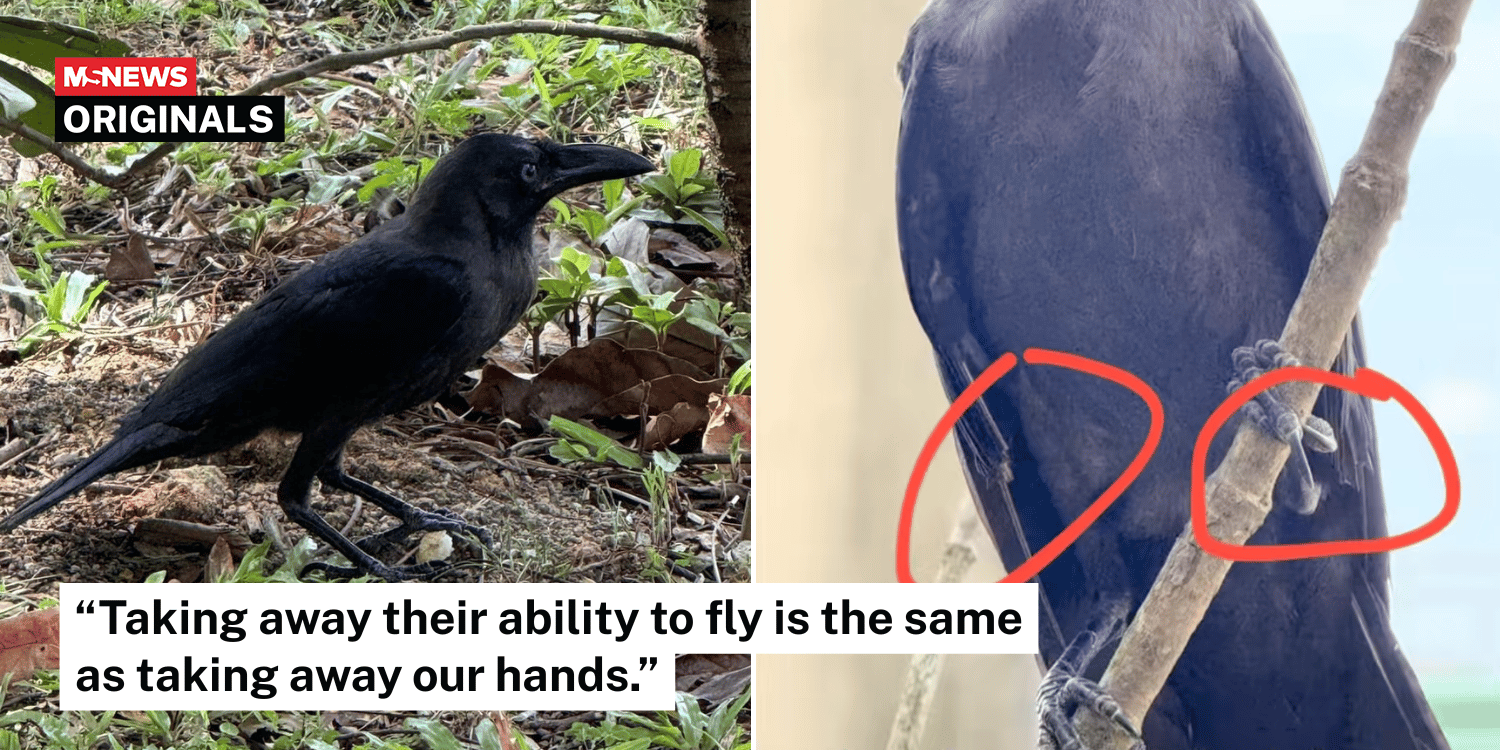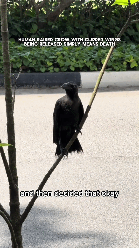 A man in Singapore recently encountered a crow with clipped wings behaving strangely, leading him to suspect the bird may have been raised by a human before being abandoned in the wild.