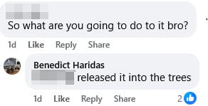 He then brought the baby snake to some trees and released it, garnering praise from wildlife lovers.