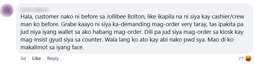 One commenter, who claimed to be a Jollibee staff member, even alleged that the woman could be very demanding when ordering food and was once seen showing off her wallet.