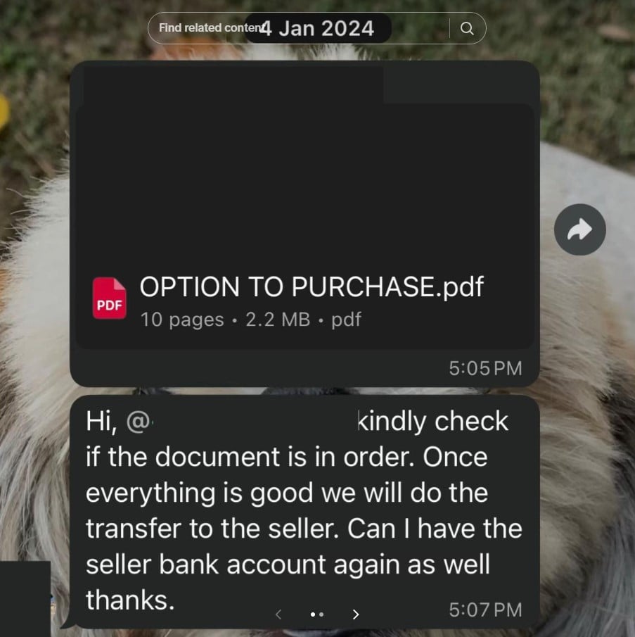 By then, it was “too late”, she said, also sharing a screenshot of an Option To Purchase sent to her on 4 Jan 2024.
