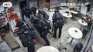 A video posted on social media showed police officers in riot gear gathering outside the eatery, preparing to confront the woman inside.