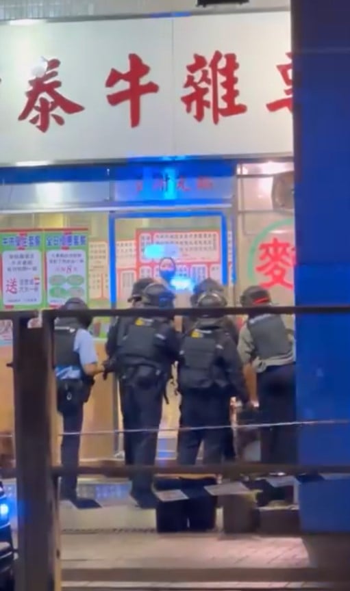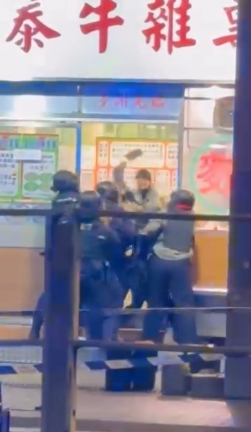 Police told HK01 that they were alerted at 12.14am that a woman was agitated and brandishing a weapon at the eatery in the Sheung Shui area.