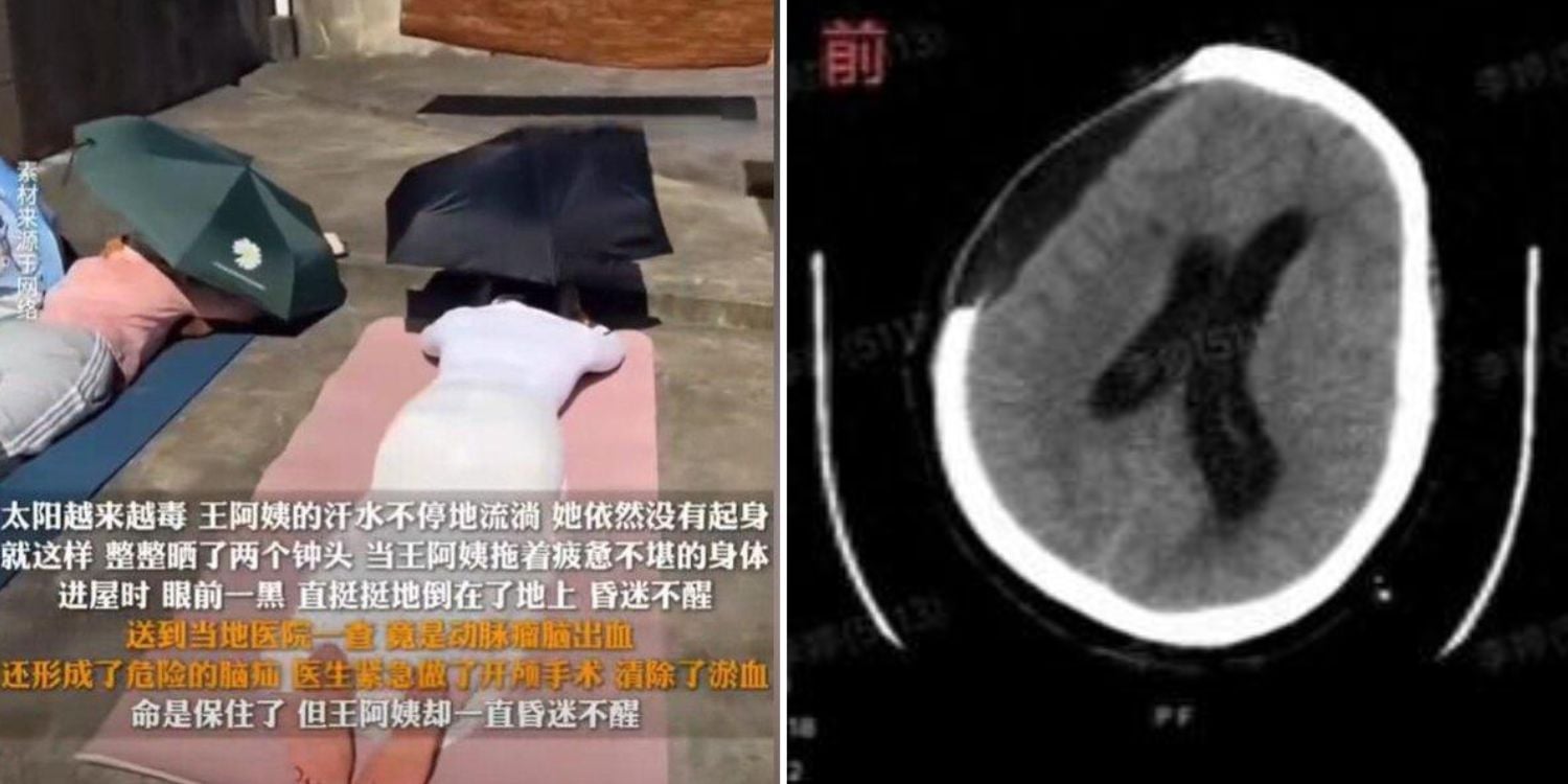 A 67-year-old woman in Zhejiang, China, fell into a coma and later required emergency brain surgery after sunbathing for two hours at noon in hopes of improving her health.