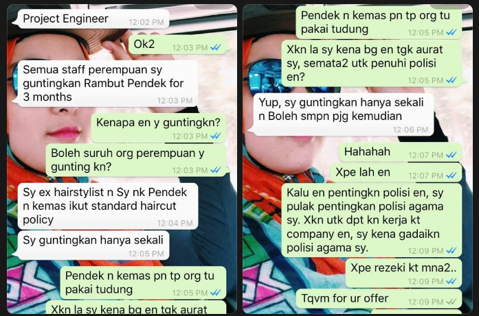 A woman in Malaysia was left shocked and disturbed after applying for a job at an oil and gas company, only to be told she had to shave her head bald to support a cancer NGO.