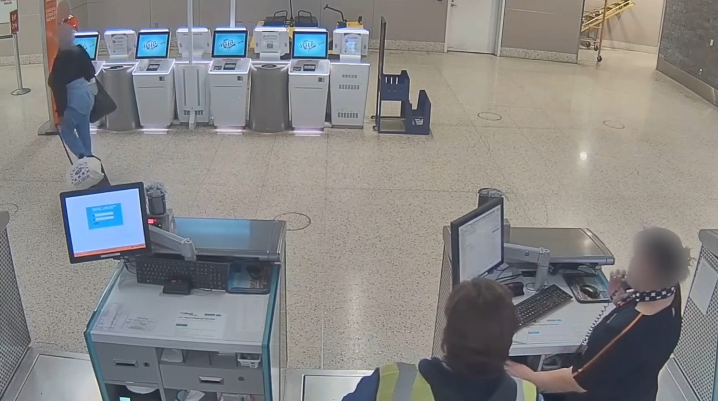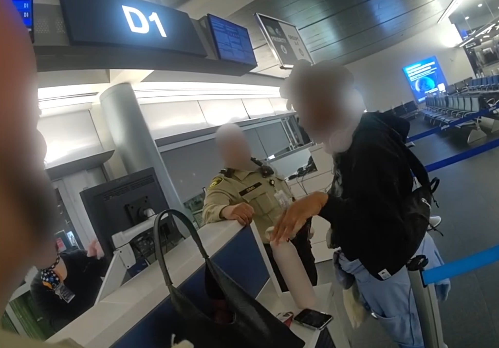 CCTV footage showed a woman with luggage and a goldendoodle dog on a leash approaching the JetBlue ticket counter at Harry Reid International Airport.