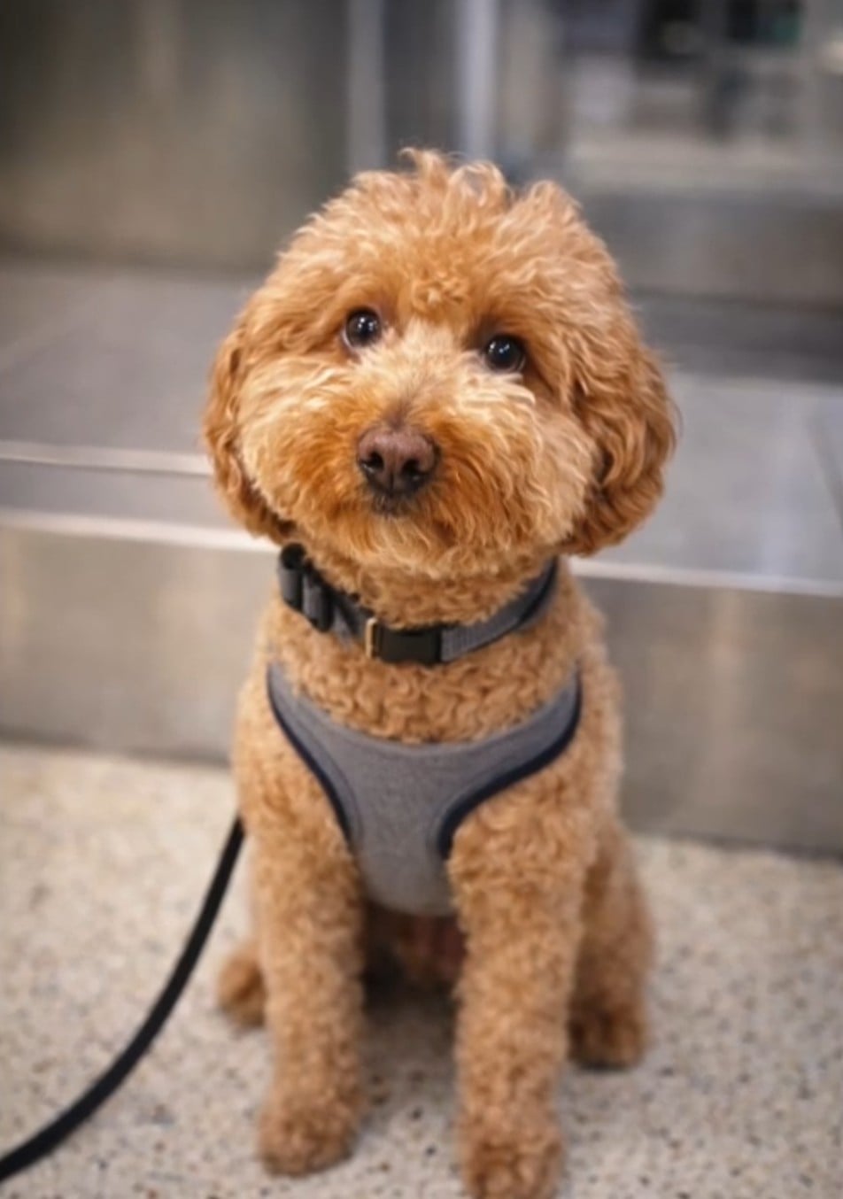Airport employees and police officers cared for the two-year-old goldendoodle before it went into the custody of Animal Protective Services.